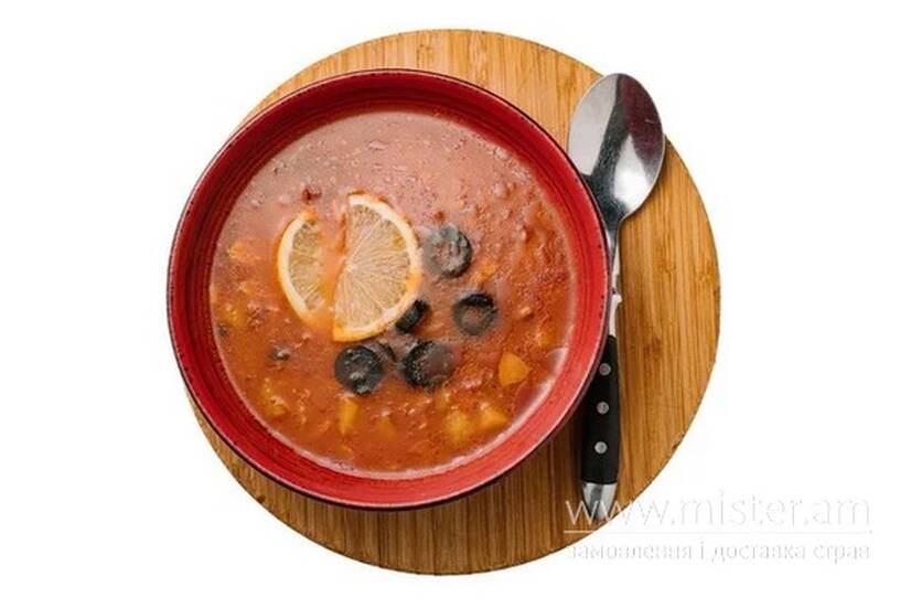 Картопля, мисливські ковбаски, салямі, сосиски, морква, цибуля, огірок маринований, маслини, лимон.