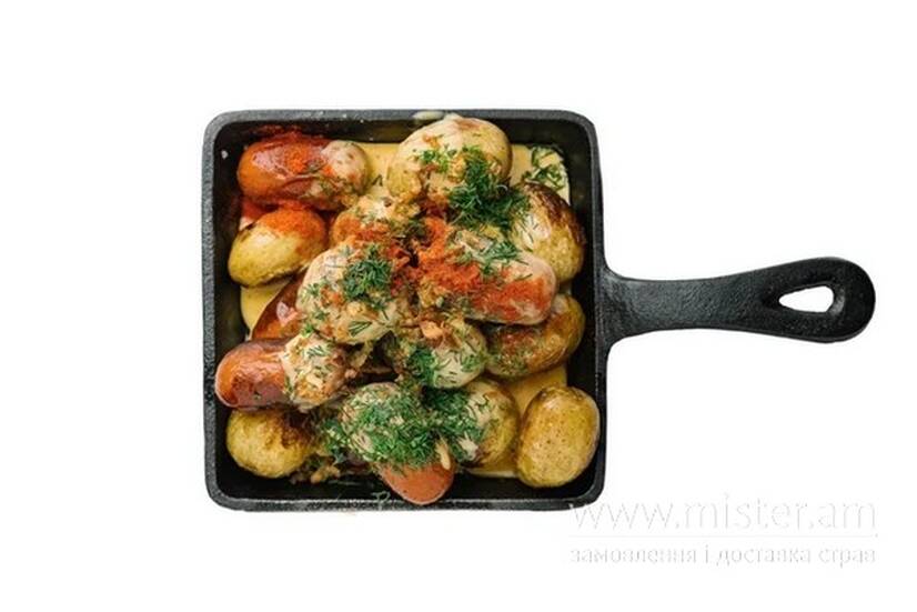 Картопля молода з копченими сосисками