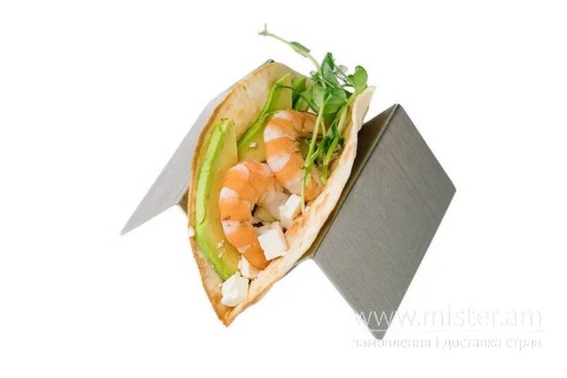 Креветка тигрова, авокадо, мікрозелень, сир бринза, соус спрінг.