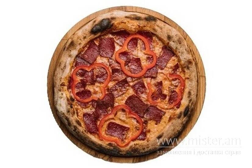 Закарпатська сирокопчена папероні, моцарела, соус із тертих томатів, перець болгарський.