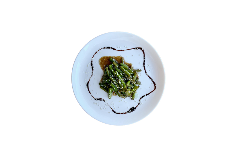 Спаржа, соус теріяки, кунжут.