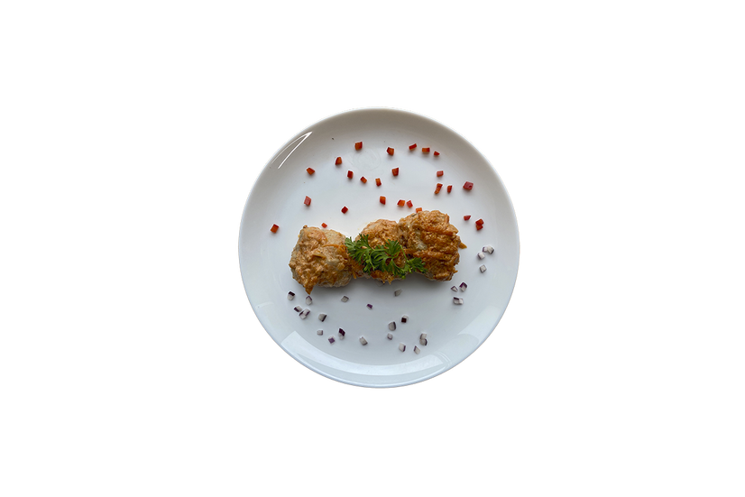Фарш курячий, цибуля, спеції, вершки, томатна паста.