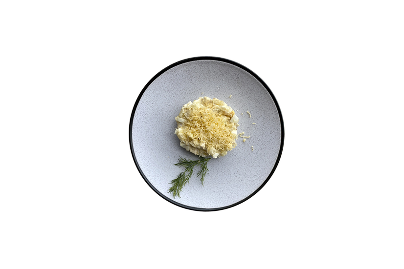 Яйце відварне, куряче філе, ананас консервований, сир твердий, майонез.