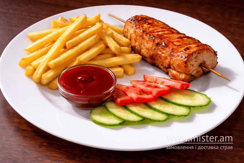 Курячий шашличок з картоплею фрі