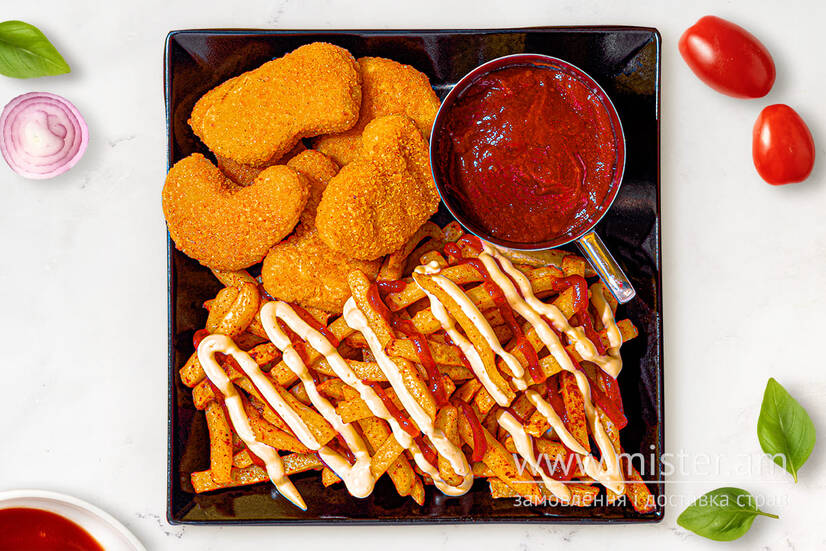 Нагетси 6 шт, печена картопля, соус порційний на вибір