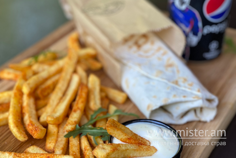 Кебаб XL + картопля фрі + напій в асортименті + фірмовий соус