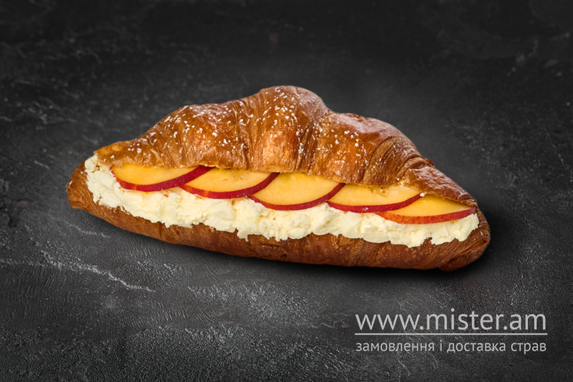 круасан Масляний, крем Маскарпоне, персик, цукрова пудра