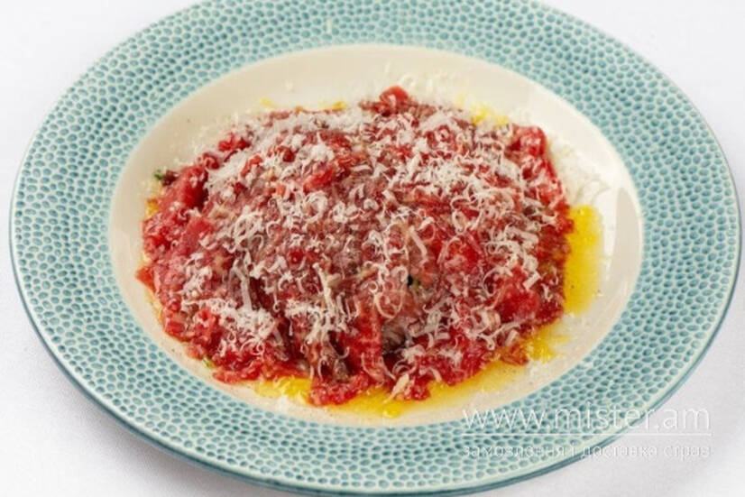 Відбірна яловичина, мікс зелені, оливкова олія, пармезан, соус дресінг.