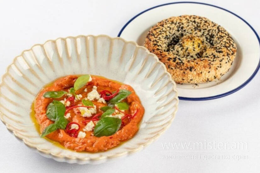 Сицилійська фокача, запечені болгарські перці, сир фета, оливкова олія.