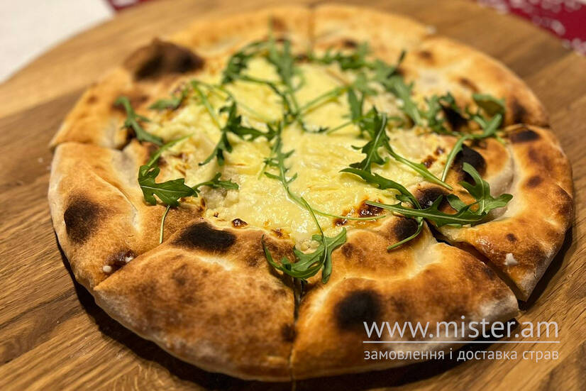 Сир, бринза, яйце, томат.соус., рване м’ясо, помідор, гриби, рукола