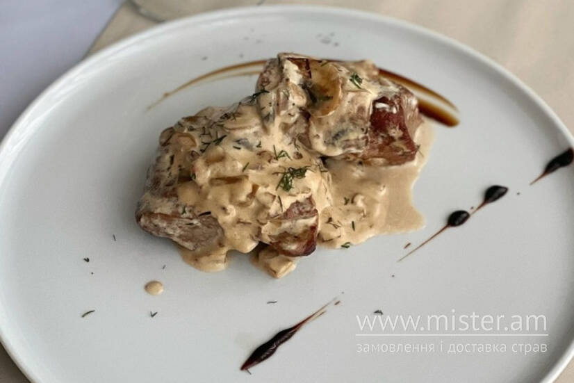 Яловичий стейк з фламбованими грибами