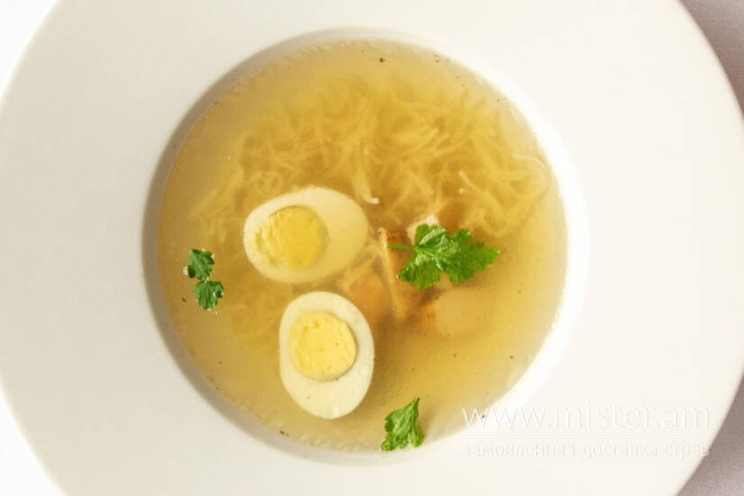 КУРЯЧИЙ БУЛЬЙОН З ДОМАШНЬОЮ ЛОКШИНОЮ