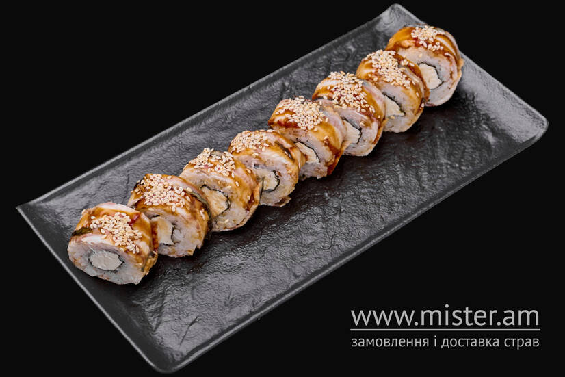 Рис, крем-сир, вугор, унагі соус, кунжут.