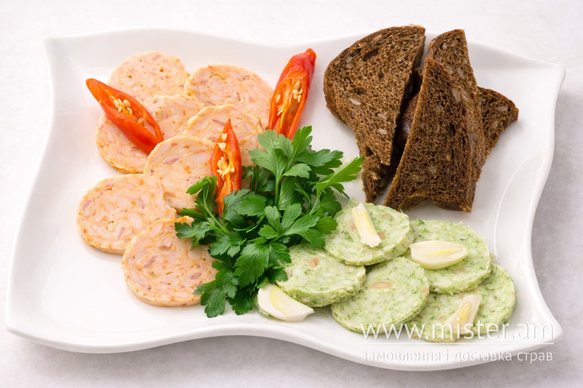 Холодні закуски: Печінковий паштет з грінками та ягідним соусом, Рибне асорті, Плато італійських делікатесів, М'ясне асорті, Тартар з лососем, Сирна тарілка, Брускета з сьомгою і крем-сиром, Брускета з хамоном і голубим сиром, Брускета з копченою куркою та ківі, Оселедець з крокетами, Оселедець з цибулею, Дачні малосоли, Сет дачних закусок, Овочева нарізка, Брускета з креветкою та в'яленими томатами, Тартинка з лососем і соусом з авокадо, Баклажани з сиром та горіхами, Закуска «Тріо», Млинці зі шпинатом і червоною рибою, Рол із шинкою та крем-сиром, Шпажка з моцареллою і помідорами чері, Заливний язик, Риба фарширована
