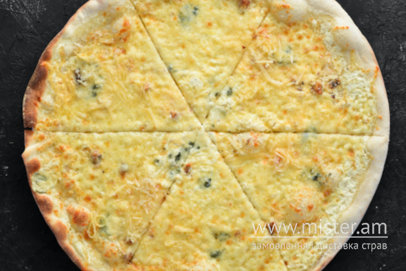 Вершковий соус, моцарела, гауда, дор блю, пармезан, грецький горіх.