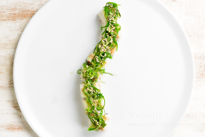 Рис, норі, крем сир, огірок, солодкий перець, авокадо, спіруліна, горіховий соус.