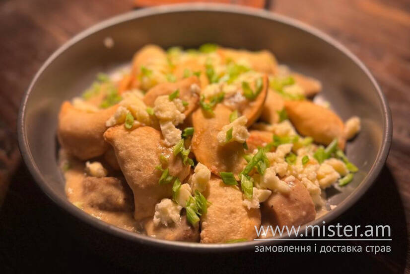 Вареники з курячим м'ясом та картоплею смажені у фритюрі