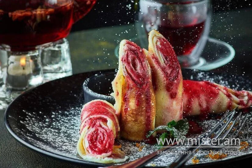 Млинці з сиром маскарпоне та полуничним соусом