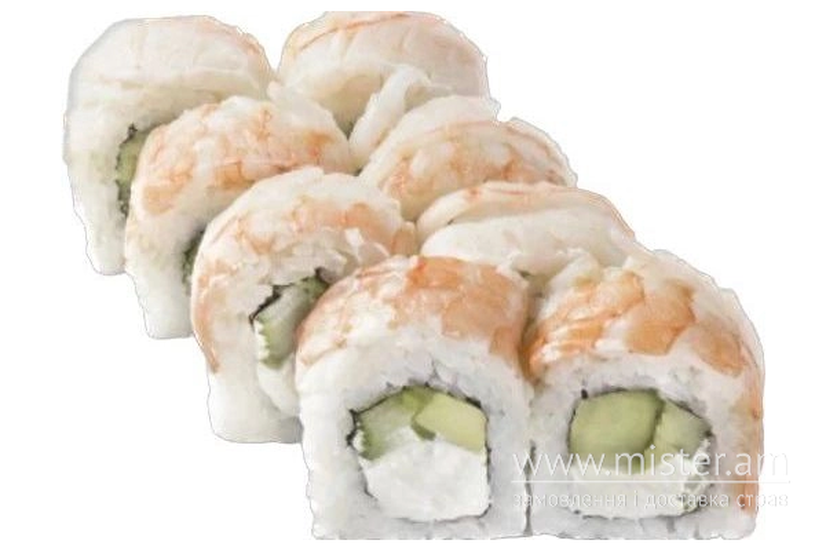 Тигрова креветка, огірок, сир вершковий, авокадо.