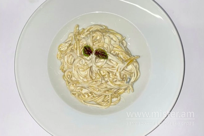 Спагетті, вершки, фета, дор блю, пармезан, мікрогрін.