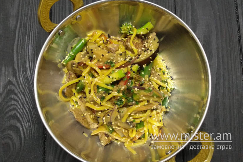 Телятина з локшиною Рамен у гостро-часниковому соусі