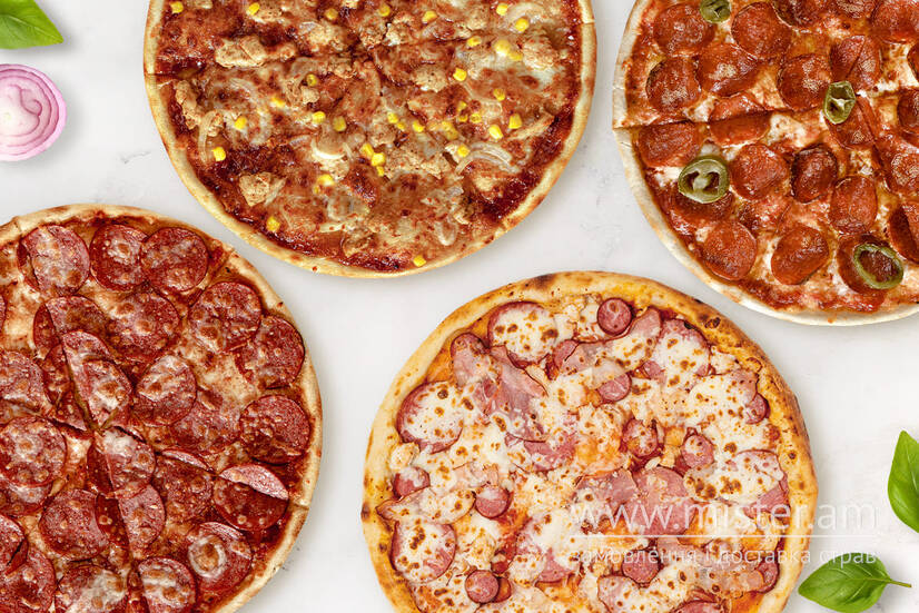 4 м`яса 30 см, Курка BBQ 30 см, Сирна салямi 30 см, Пеперонi 30 см.