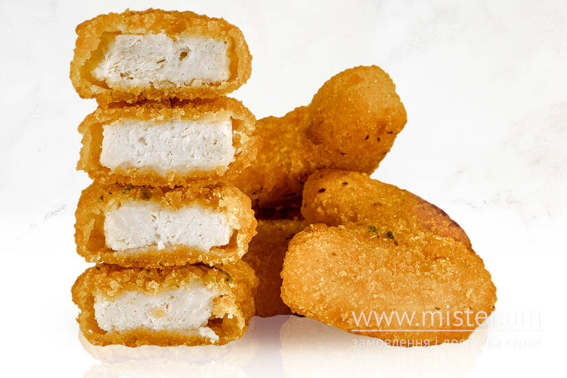 Ніжні курячі нагетси в хрусткій паніровці, обсмажені до апетитної скоринки.