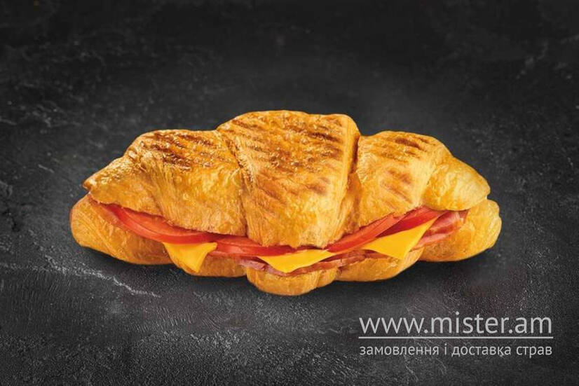Круасан, яєчня, сир тостовий салямі, помідор, соус Цезар.
