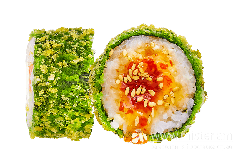 Рис, норі, крем сир камамбер, соус кисло-солодкий.
