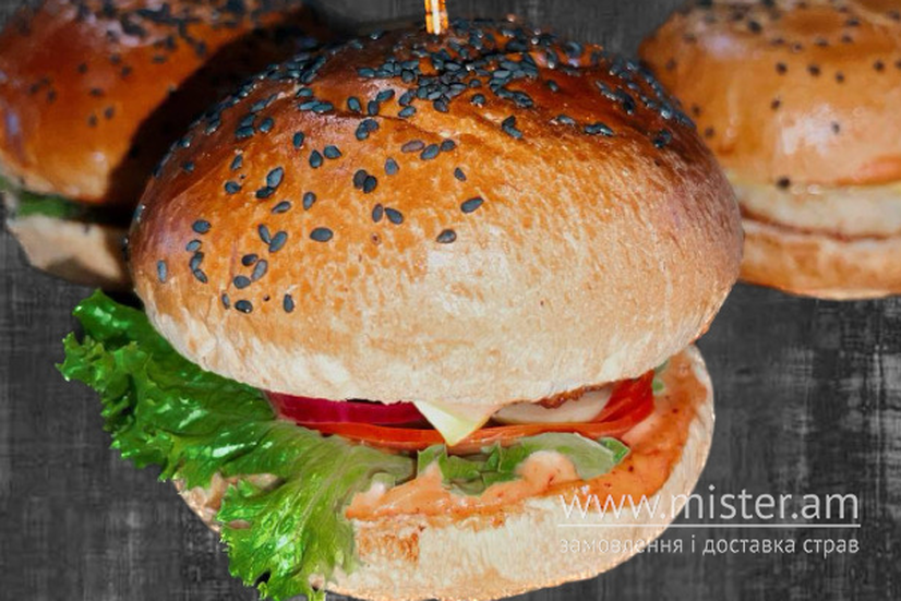 Котлета з телятини, мікс салатів, сир, картопля фрі.