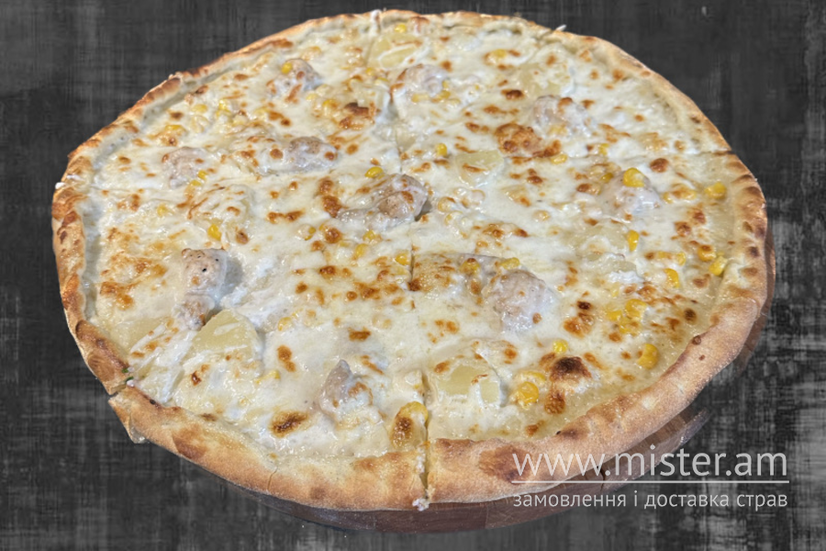 Вершковий соус, куряче філе, ананас, моцарелла.