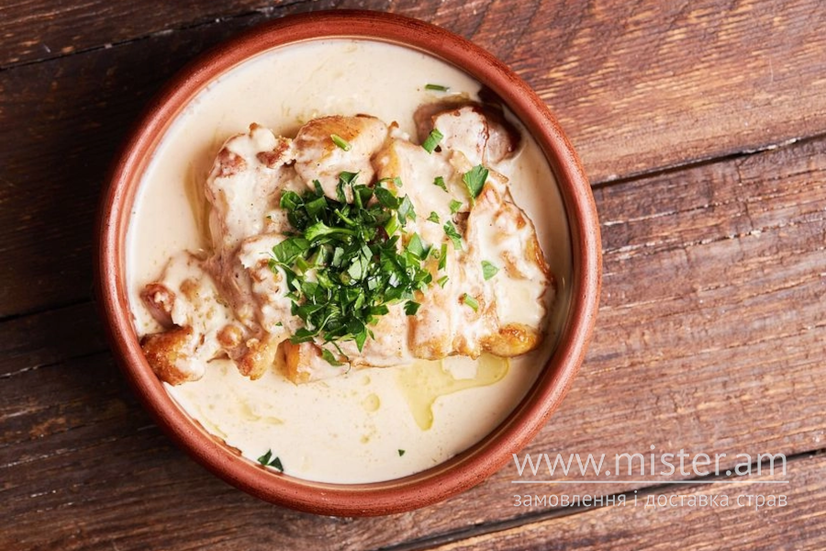 Смажене куряче бедро в ніжному вершково-часникові у соусі.