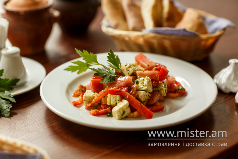 Салат ВітаміннийСалат з молодої капусти, моркви, цибулею, гранатою, зелені, заправлений олією та оцтом.117 ₴250 г