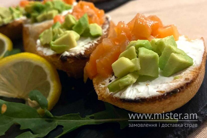 Брускети з лососем та авокадо