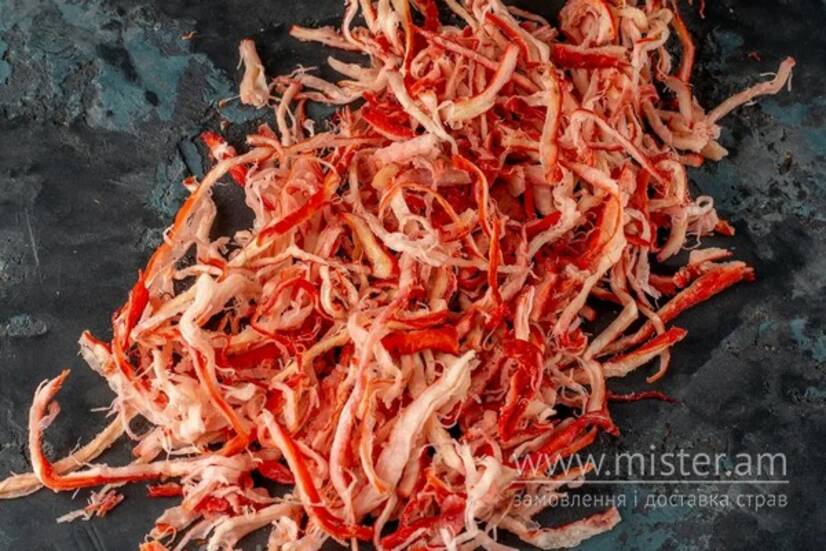 М`яка стружка, солодкувата на смак, відмінно підійде до світлого нефільтрованого. Вагова страва, кінцеву вартість замовлення буде змінено після опрацювання закладом.