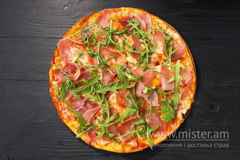 Основа, прошуто, рукола, сир, томатний або вершковий соус на вибір.