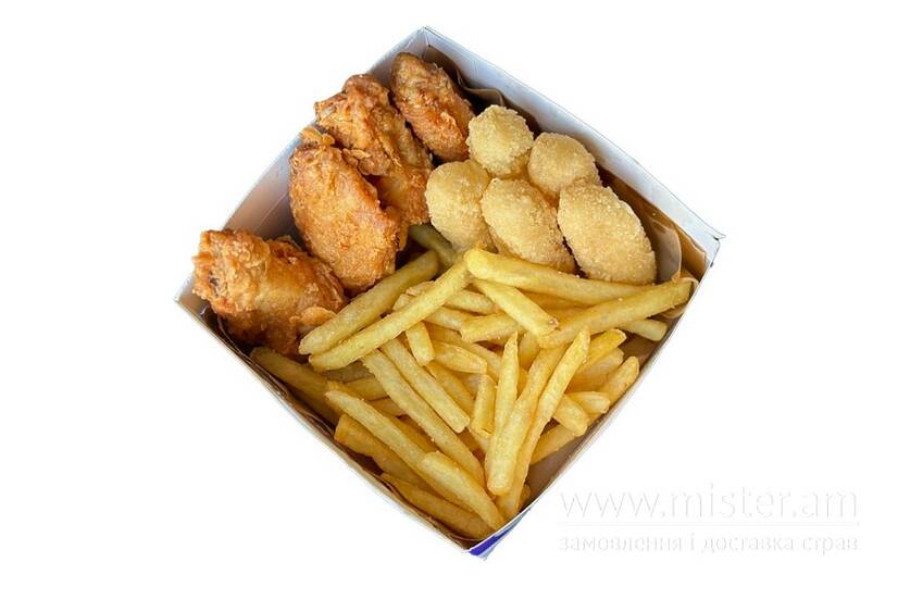 Нагетси/крильця, сирні палички 5 шт., картопля фрі.