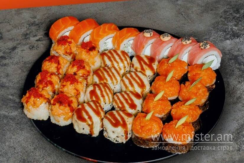 Рол "Philadelphia Mix" з лососем та тунцем, Запечений рол "Philadeplhia", Запечений рол з вугром, рол Камікадзе.