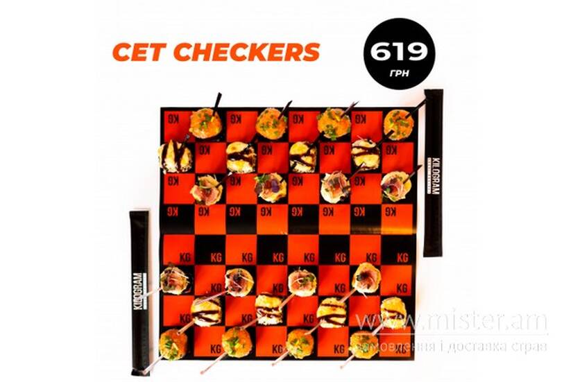 У сет входять: "Татакі тунець рол", "Запечений рол з вугром", "Kamikaze". У комплекті: ігрове поле, інструкція до їстівних шашок, шпажки різного кольору, щоб не сплутати свої роли з ролами суперника.