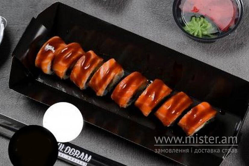 Рис, норі, крем-сир, айсберг, вугор, лосось, соус Унагі.