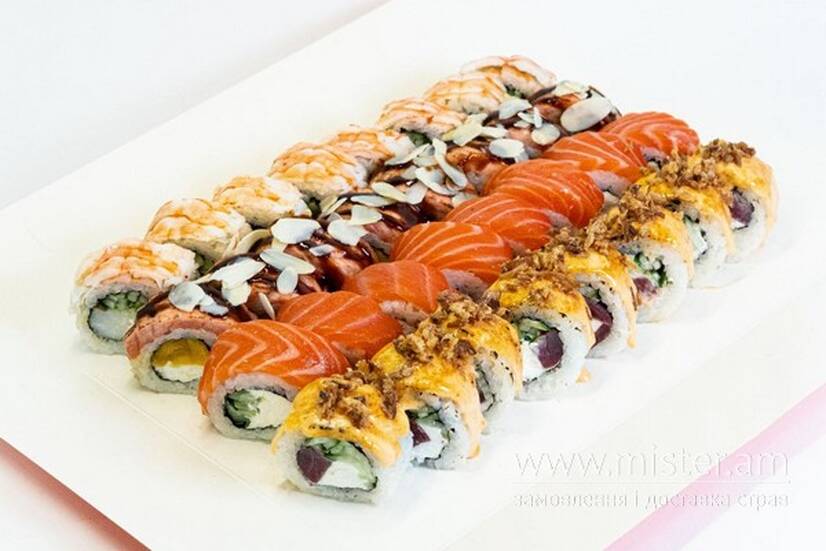 Рол Філадельфія з лососем, рол Філадельфія з креветкою, рол Філадельфія гриль, рол Філадельфія спайсі тунець.