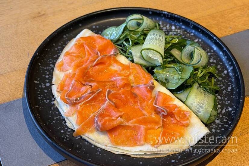 Млинці з домашнім сиром, бананом і соусом а-ля патісьєр
