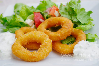 Кільца цибулі з часниковим соусом