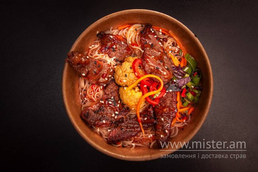 Локшична Наминай Фунчоза з яловичиною та соусом солодкий чилі