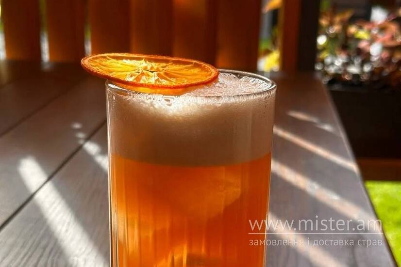 Бітер кампарі, ром білий, ром темний, сік ананасовий, фреш лимону, сироп цукровий.