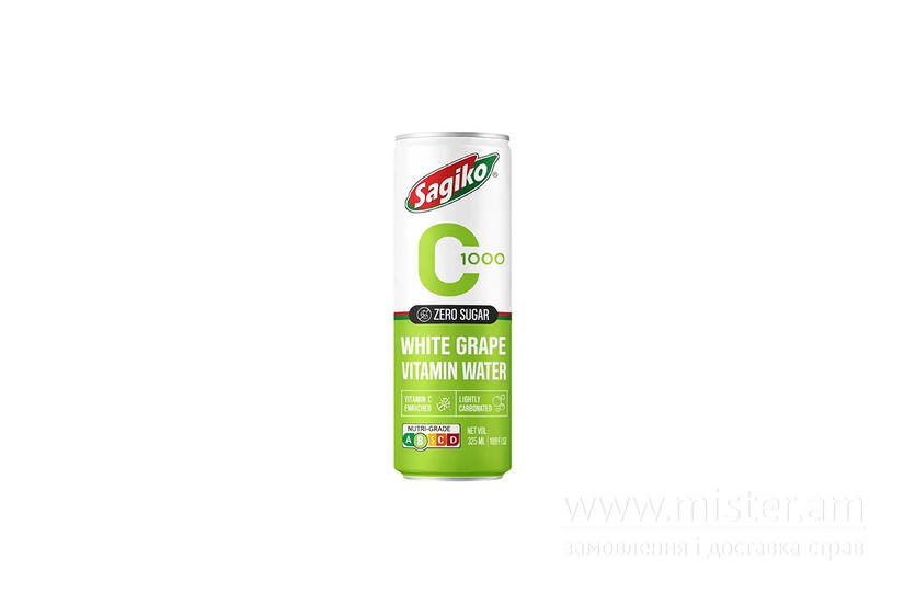 Sagiko C1000 White Grape Vitamin Water — це легка, освіжаюча вітамінна вода з ніжним смаком білого винограду. Напій не містить цукру, збагачений вітаміном C та має легку газованість, що робить його ідеальним вибором для щоденного втамування спраги.