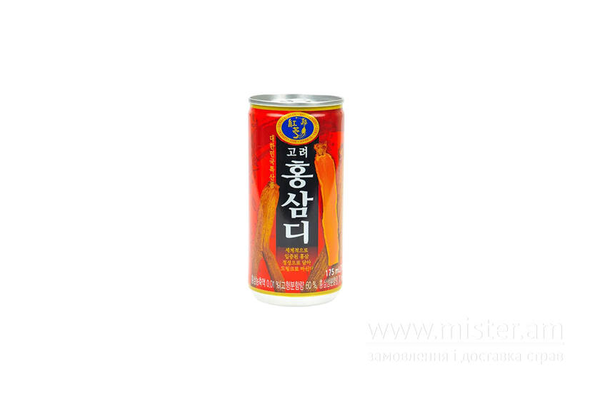 Традиційний корейський напій, виготовлений на основі червоного женьшеню, відомого своїми корисними властивостями. Женьшень здавна цінується за здатність відновлювати енергію, підвищувати витривалість та зміцнювати імунітет. Напій має насичений, злегка терпкий смак, характерний для женьшеню, та освіжаючий післясмак.