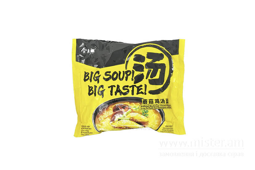 Локшина Big Soup зі смаком Грибів та Курки JML - це локшина швидкого приготування з глибоким ароматом грибів і ніжним смаком курячого бульйону з легкою пікантною ноткою у великому форматі порції. Чудово підходить для ситного обіду або вечері, коли хочеться чогось теплого, ароматного та по-справжньому поживного.