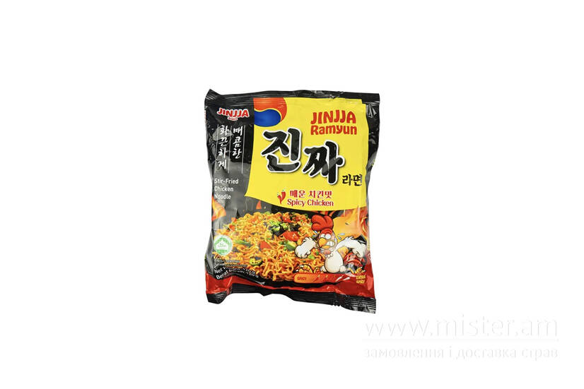 Локшина рамьон Курка стір-фрай Jinjja — це локшина швидкого приготування у форматі stir-fried (без бульйону) з інтенсивним гострим смаком курки та чилі. Має насичений пряний аромат, яскраву гостроту та карамелізовані нотки соєвого соусу й спецій. Локшина обсмажується разом із соусом, що робить її більш густою, соковитою та насиченою за смаком.
