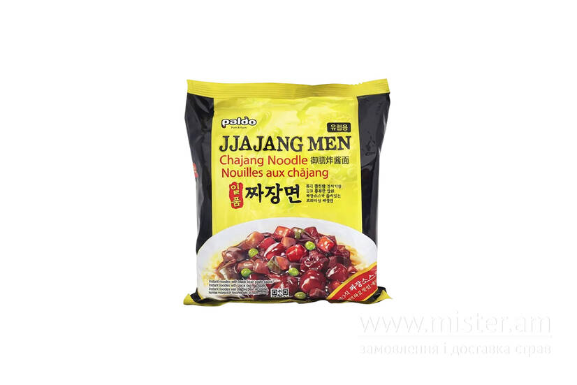 Paldo Jjajangmen — це популярна корейська локшина швидкого приготування з густим ароматним соусом на основі чорної соєвої пасти чаджан (짜장). Вона має насичений солонувато-солодкий смак з легкими карамельними нотами та глибоким умамі, характерним для традиційної корейської страви jjajangmyeon.